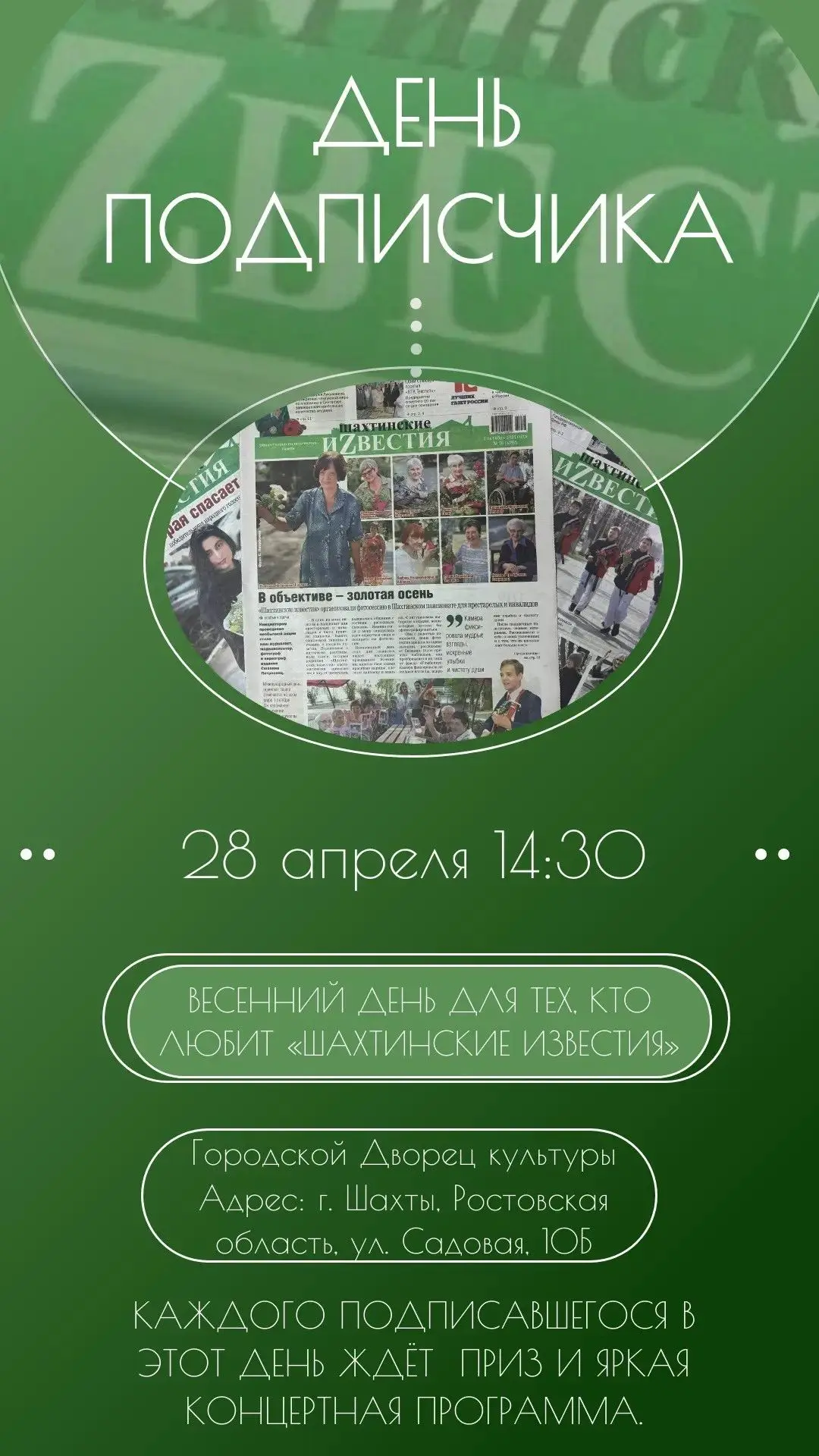 Приглашаем шахтинцев принять участие в мероприятии, поддержать городскую газету, стать героем интервью и частью большой и дружной команды подписчиков!