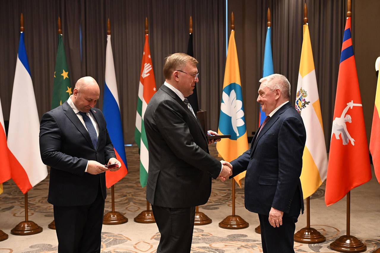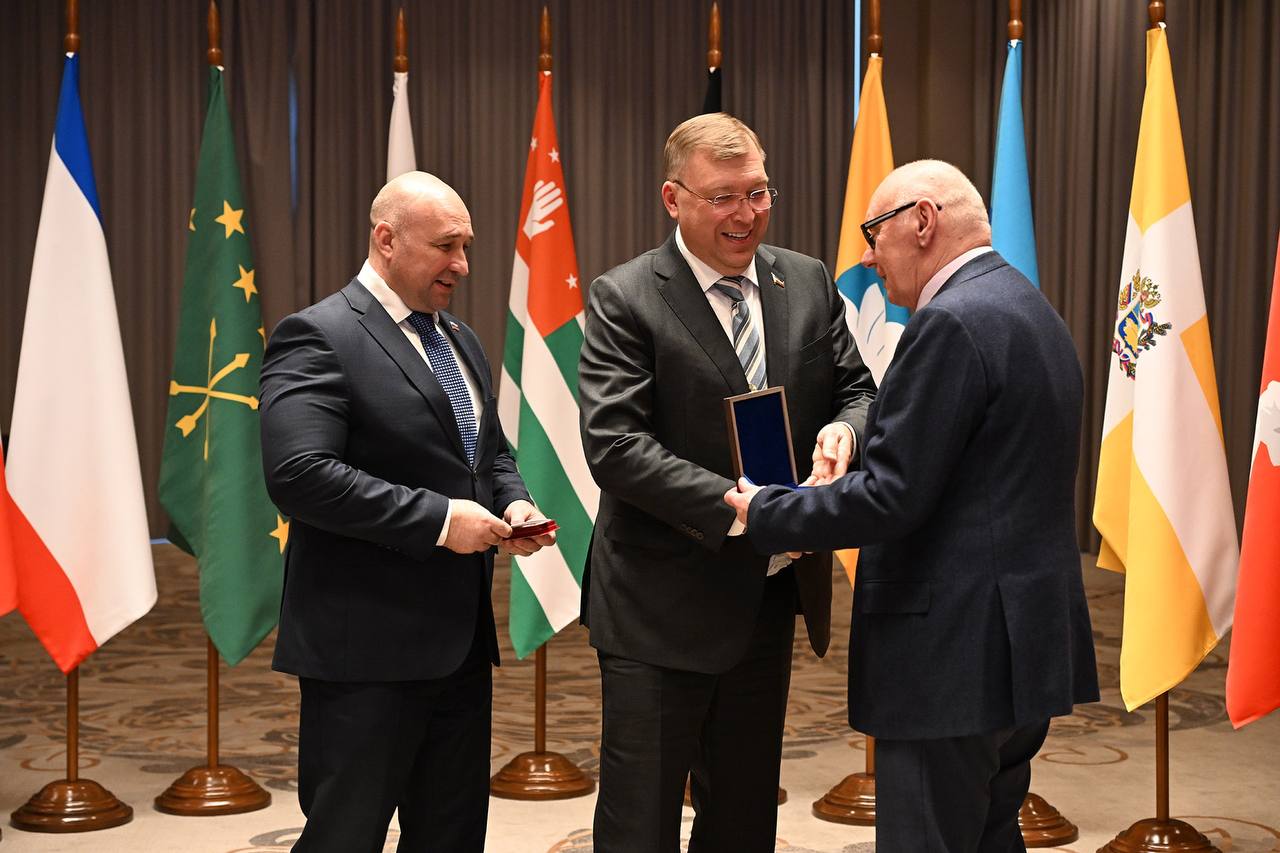 За вклад в развитие межпарламентского сотрудничества Александр Попов и Владимир Бекетов были удостоены почетного звания «Заслуженный парламентарий Юга России». Соответствующие памятные знаки им вручил Председатель Законодательного Собрания Ростовской области Александр Ищенко.