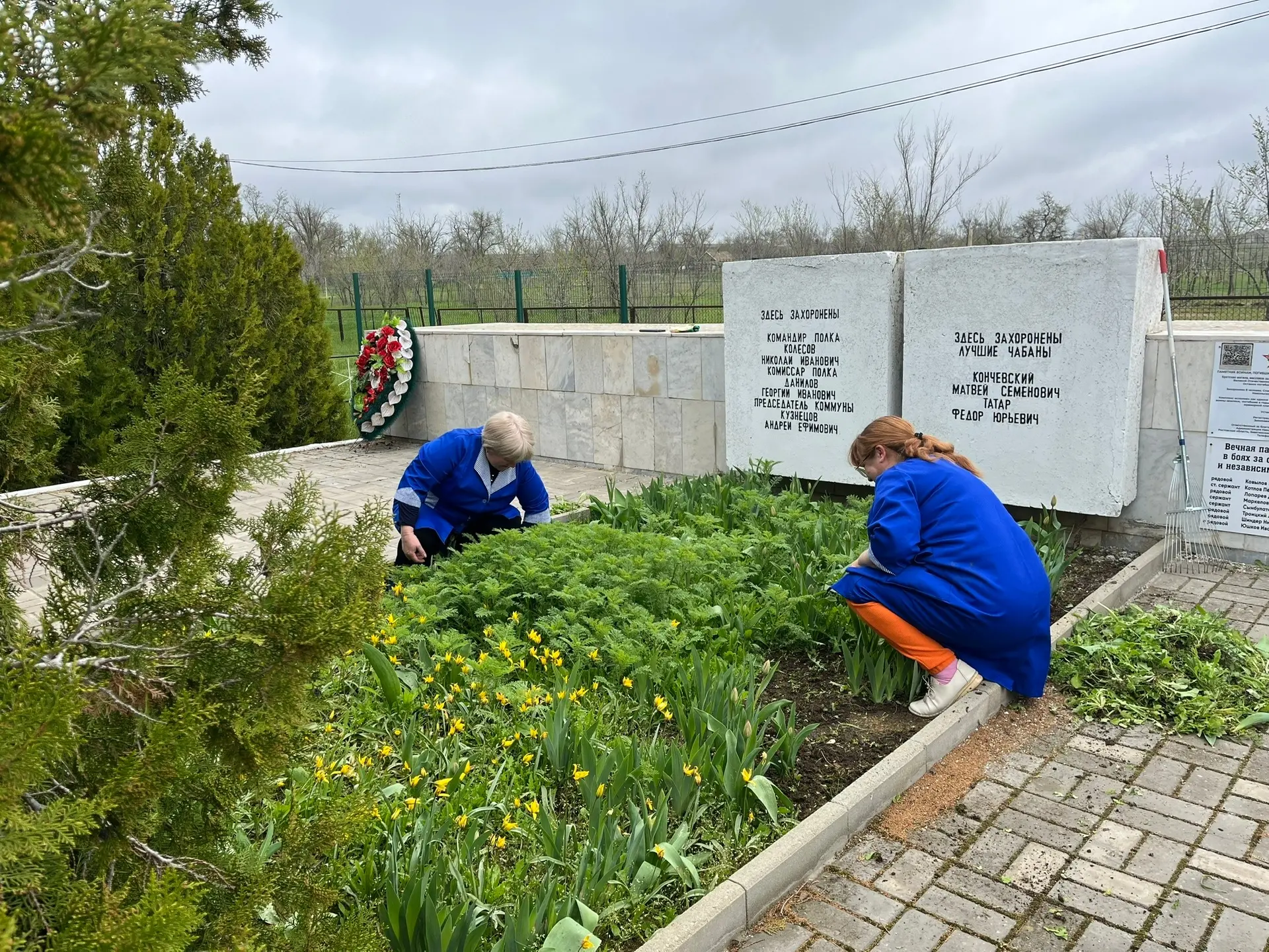 благоустроили памятники в Заветинском районе, в том числе у Никольской СОШ.