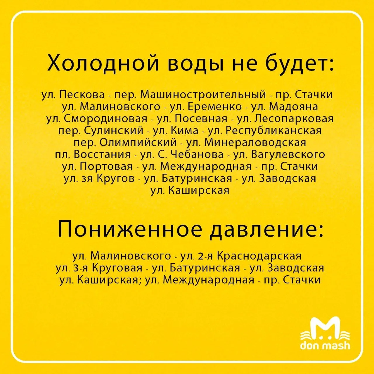 Вентили перекроют с 9 утра 28 апреля до 5 утра 29-го. Полный список адресов — в карточке. Вы сами знаете, что делать, но мы напомним: наполните вёдра и тазики.