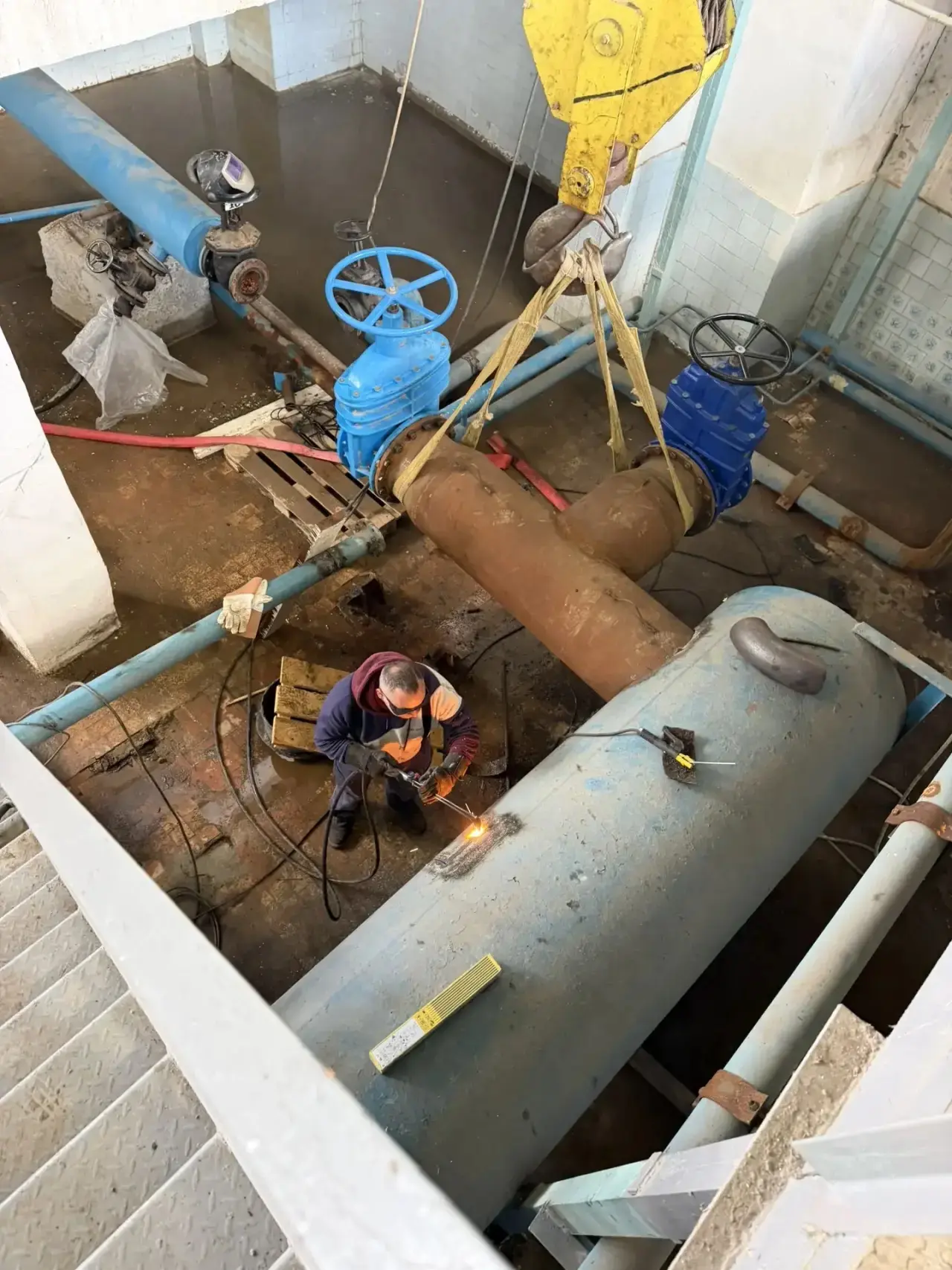 На текущий момент ремонтная бригада уже завершила работы на воздухосборнике, расположенном на трассе водовода.