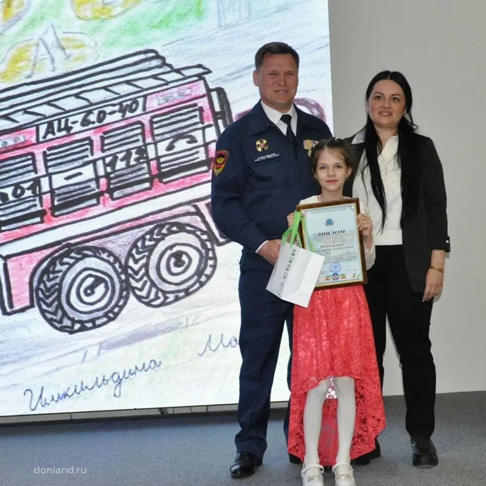 В ходе мероприятия награждены победители конкурса рисунка «Профессия пожарного глазами детей». Рисунок-победитель будет нанесен на зарплатные карты Сбербанка, которыми пользуются сотрудники противопожарной службы Ростовской области.