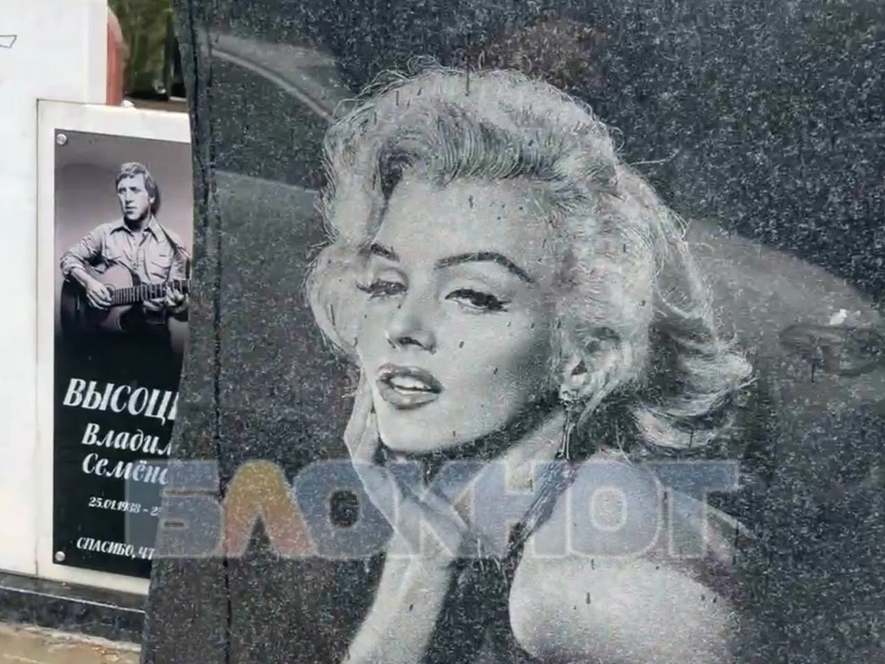 Принцесса Диана, Мерлин Монро, Михаил Круг, Юрий Никулин и Сегей Бодров — это лишь малая часть прославленных людей, чьи фото появились на демонстрационных надгробиях рядом с кладбищем.