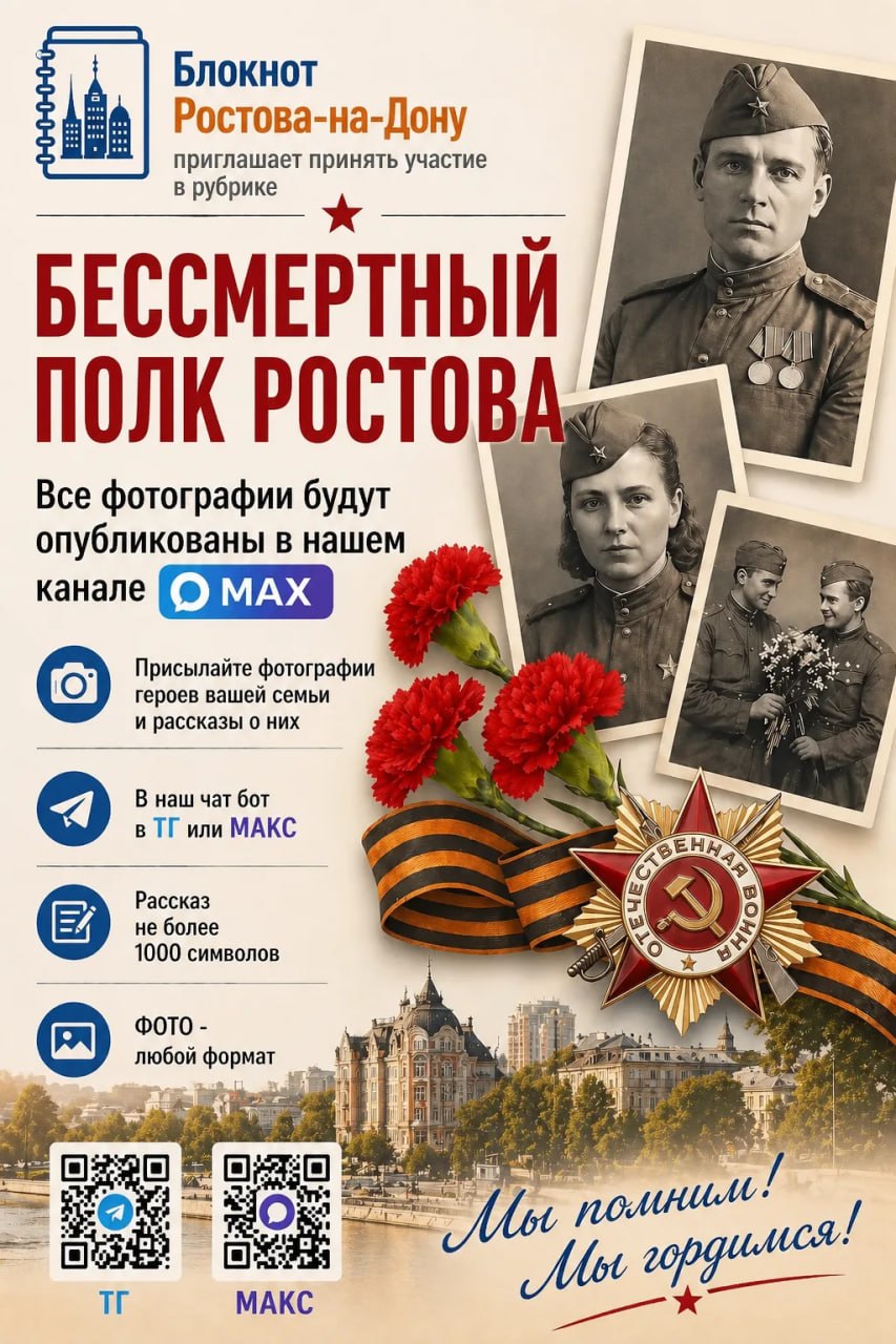 Друзья, мы запускаем рубрику «Бессмертный полк Ростова» в нашем канале Макс.