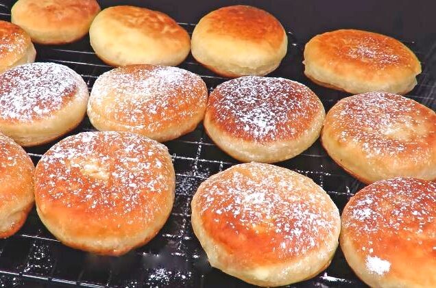 Вот и все: готовые пончики можно выкладывать на бумажные полотенца для удаления лишнего масла и посыпать сахарной пудрой. Порадуйте своих близких и друзей этим восхитительным угощением!