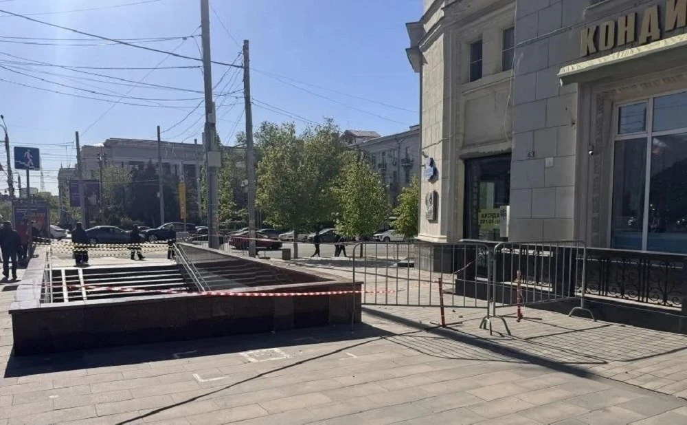 Теперь угол здания и подземный переход рядом с ним огорожены лентой.