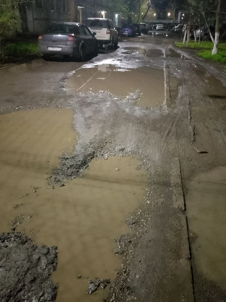 «Это Авиагородок, дом 27 в Батайске. По этой дороге ездят жители трех многоквартирных домов — №27, 39 и 22. Мы не раз обращались в УК с просьбой отремонтировать дорожное покрытие, но никакой реакции нет», — рассказала жительница.