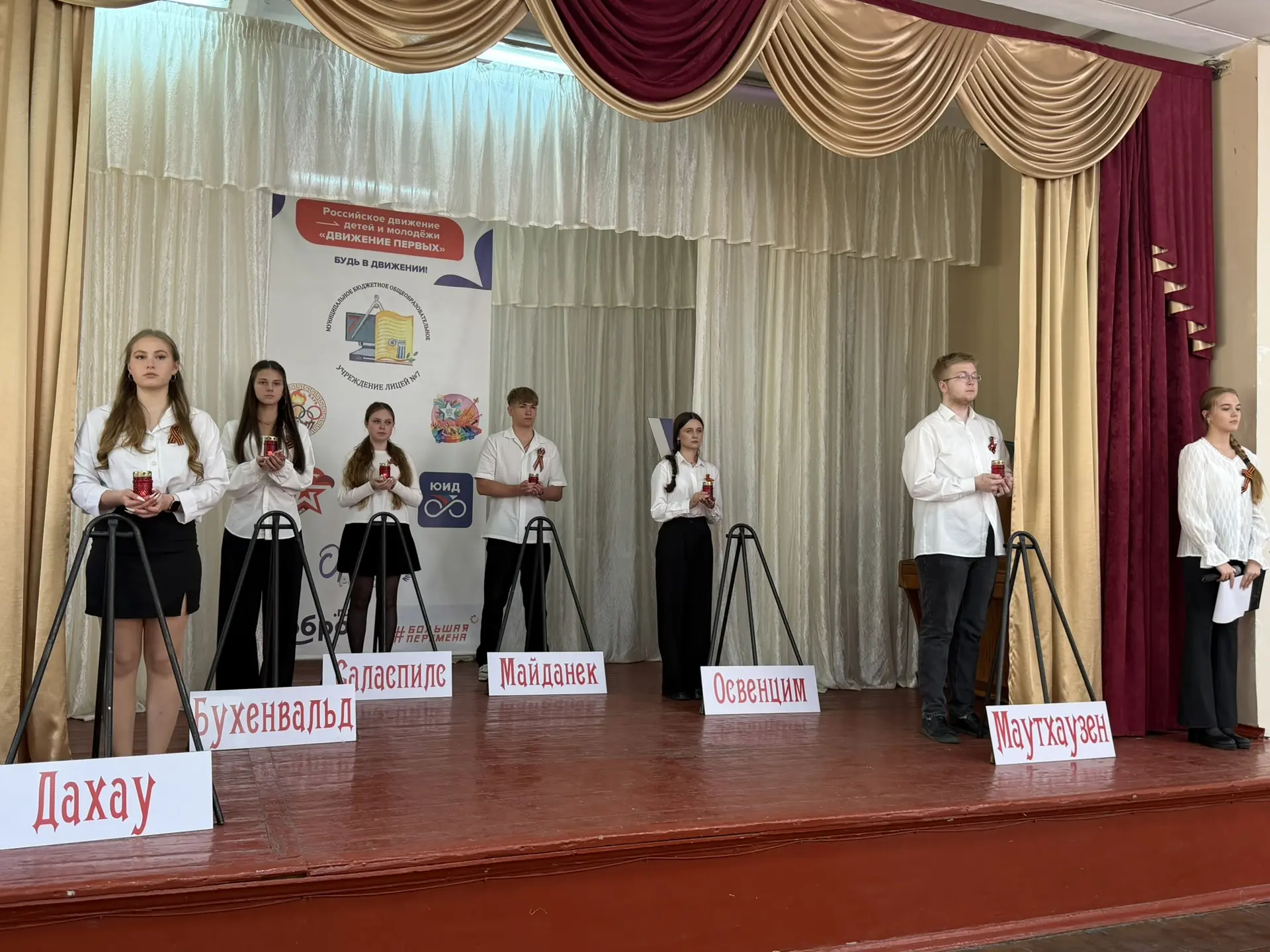 Ученики рассказали собравшимся о фашистских концлагерях, о том, какой нечеловеческой ценой досталась Победа, о стойкости защитников Родины и миллионах загубленных жизней.