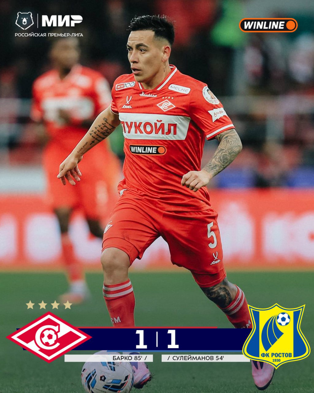 «Спартак» набрал 19 очков и занимает шестое место в турнирной таблице РПЛ, «Ростов» с 14 очками расположился на десятой строчке.