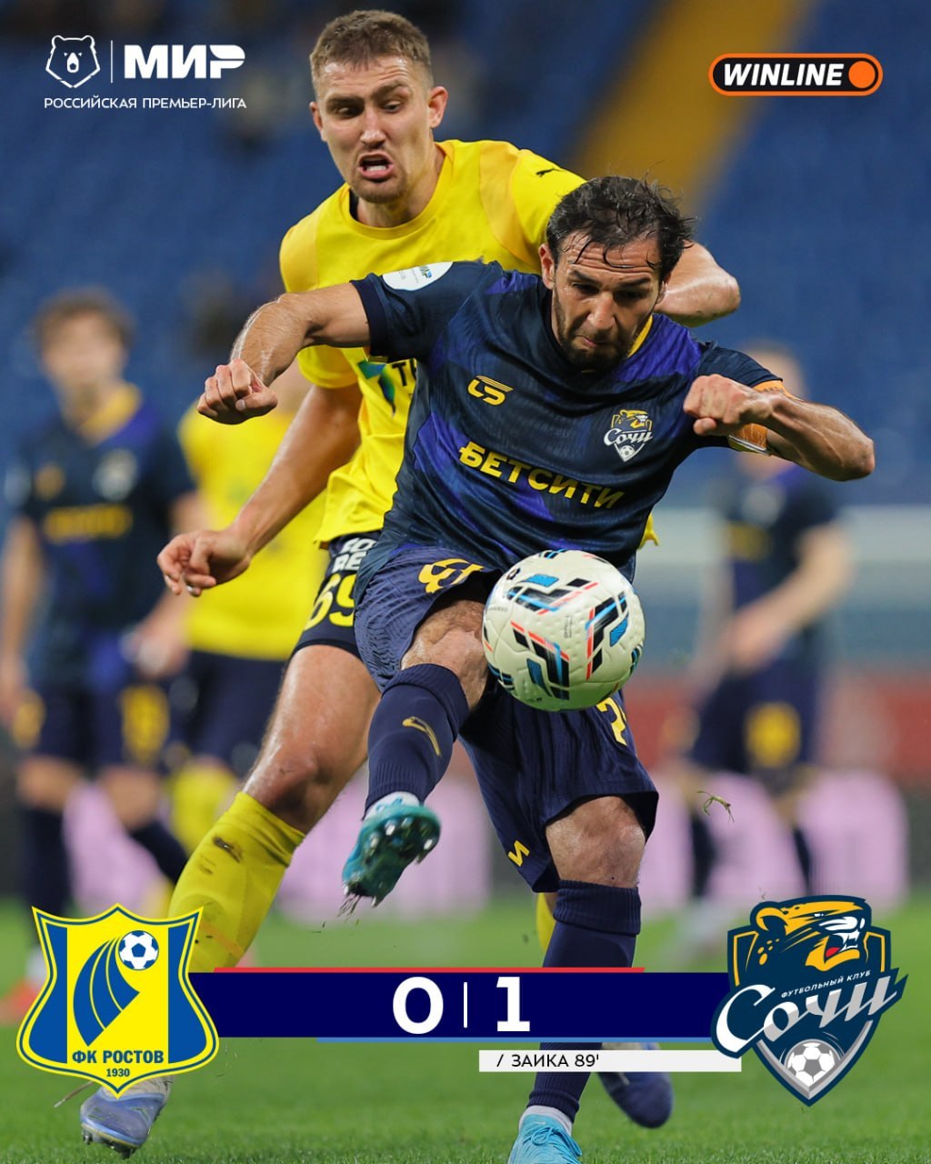 «Сочи» обыграл «Ростов» в гостевом матче 25-го тура Российской премьер-лиги (РПЛ). Игра в Ростове-на-Дону закончилась со счетом 1:0.